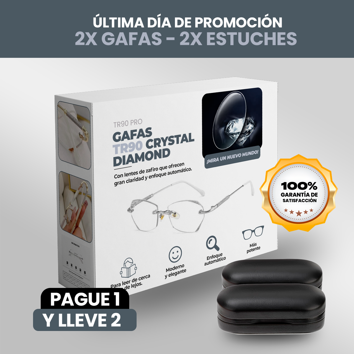 Gafas TR90 CRYSTAL DIAMOND® - ¡Paga 1 Lleva 2 + 2 Estuches de Regalo! 💎